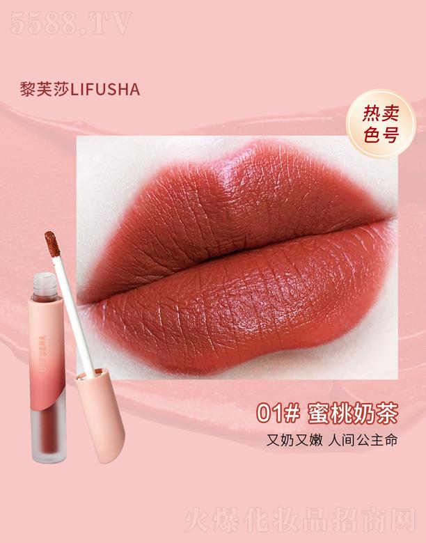 黎芙莎絲滑奶霜柔霧唇釉-蜜桃奶茶 -